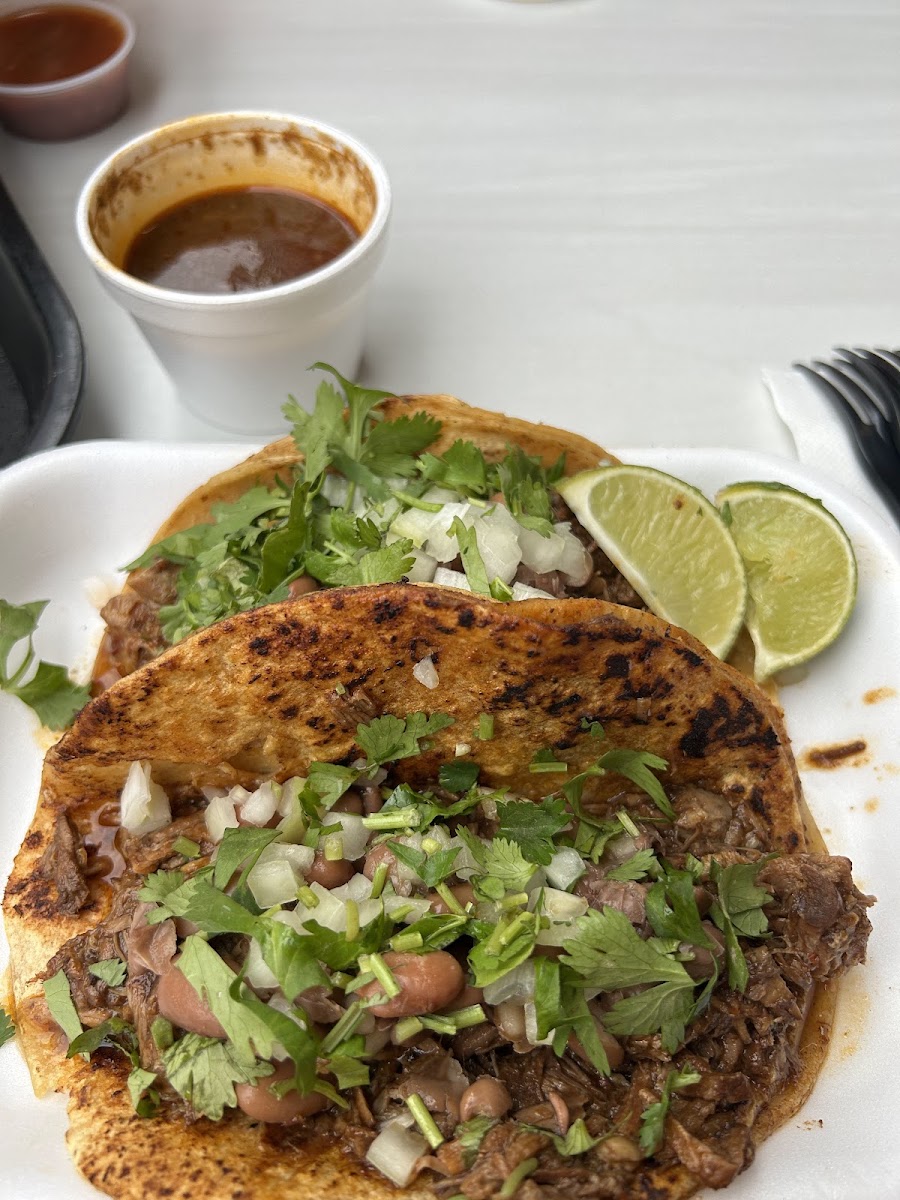 Really the best birria tacos I have ever had. They are big, with a lot of delicious meat and of course, the little cup with the sauce. It’s very very good.